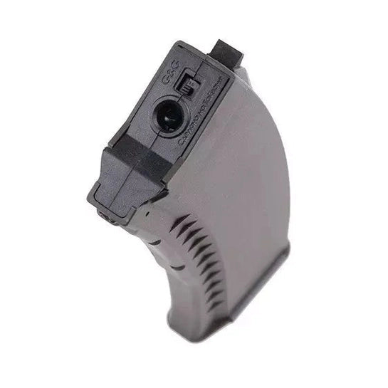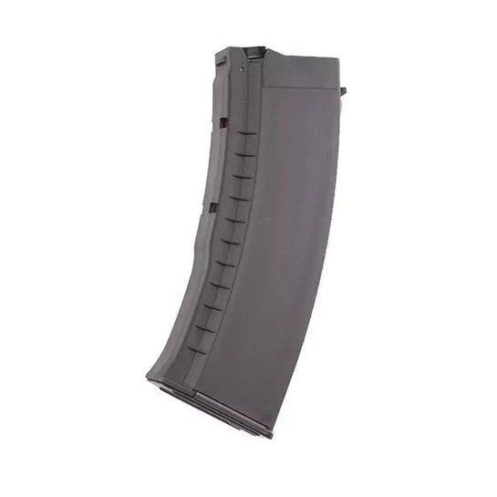 Izgatavota no pastiprināta olīvu polimēra, vidēja vāciņa tipa aptvere AK replikām. Ietilpība 120 BB.