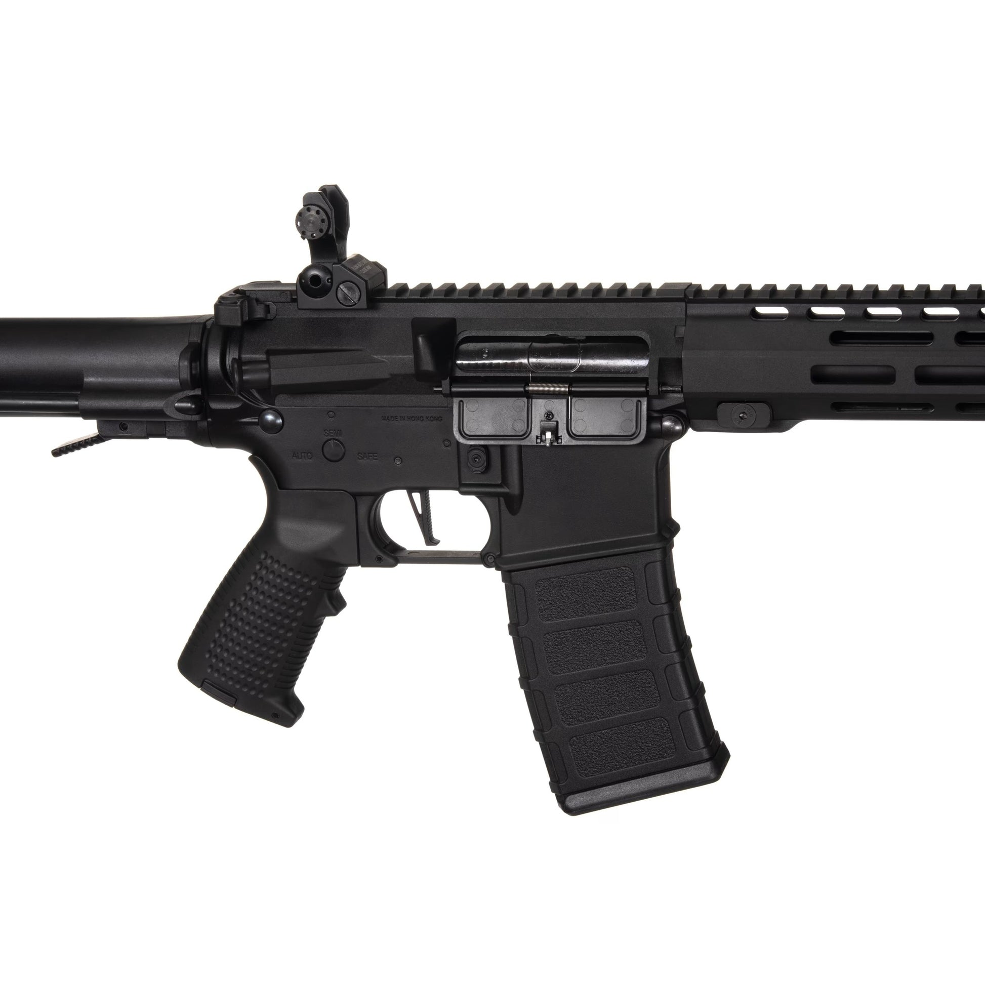 The Classic Army CA4 ML10 M-LOK Skirmish Carbine is one of many Classic Army entry level rifles. Utilizing Classic Army's nylon fiber reinforced polymer allows for a lighter weight platform while ensuring extreme durability in a cost efficient package. The CA4 ML10 features a high rate of fire along, and paired with a 300rd high capacity magazine, allowing devastating firepower to your enemies, leaving them cowering away in cover. It also features an M-LOK rail system for a skeletonized version of a standard RIS M4 rail. Rail segments can be attached to the rail, allowing for the attachments of accessories such as lights, lasers, bipods, or grips. Front and rear sights are included, and can be flipped down, leaving you with plenty of rail space for you to mount an optic. The quick change spring feature allows you to change the power of the gun quickly and easily (upgrade spring not included) so you're ready for all environments and ranges of play.