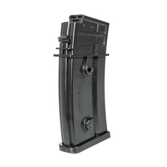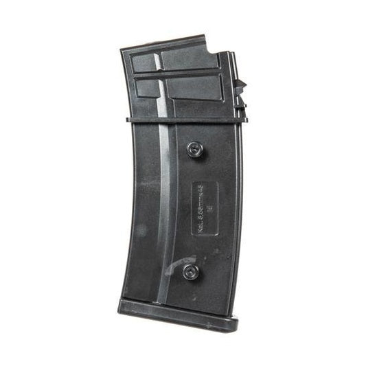 Very good feed G/G36 Midcap magazine made of high quality plastic. Although the magazine is made of plastic, it is very sturdy, of high quality and looks very authentic too. It is compatible with all known G/G36 AEGs (except <0.5 Joule) and fits of course also in other G/G36 versions (G36C, G36K etc). Midcap magazines are an excellent alternative to Hicap magazines because they have a very considerable capacity, unlike lowcap magazines and a magazine change is much faster than the lengthy mounting of a Hicap magazine. This is a very important advantage, especially in hectic situations. Unlike hicap magazines, a midcap does not rustle. For a quick recharge we recommend the use of a speedloader. For lowcap and midcap magazines it is very important that the balls are not forcibly pressed into the magazine because otherwise the spring can deform.
