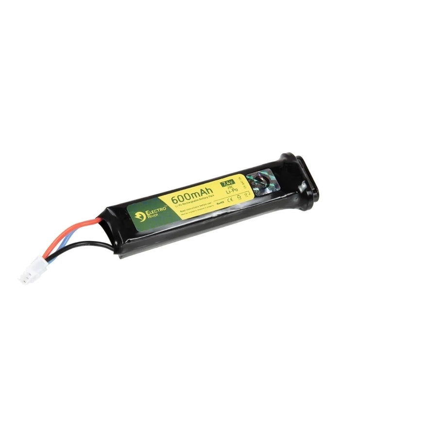 The Electro River LiPo 7.4 V 600 mAh 20C battery is the perfect solution for those looking for a reliable power source for their pistol replica. With its high capacity of 600 mAh and voltage of 7.4 V and compact size, this battery will be perfect for powering electric pistol replicas.