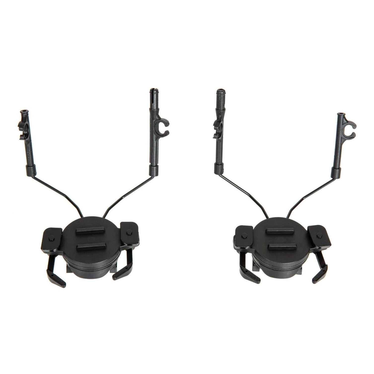 Installation that allows the installation of tactical headsets or hearing protectors on the side rail of the EX type helmet. Compatible with 19-21mm rails. Two metal levers allow for quick assembly without the use of tools, and the metal headbands are adjustable and have two settings - closer or further to the ear.