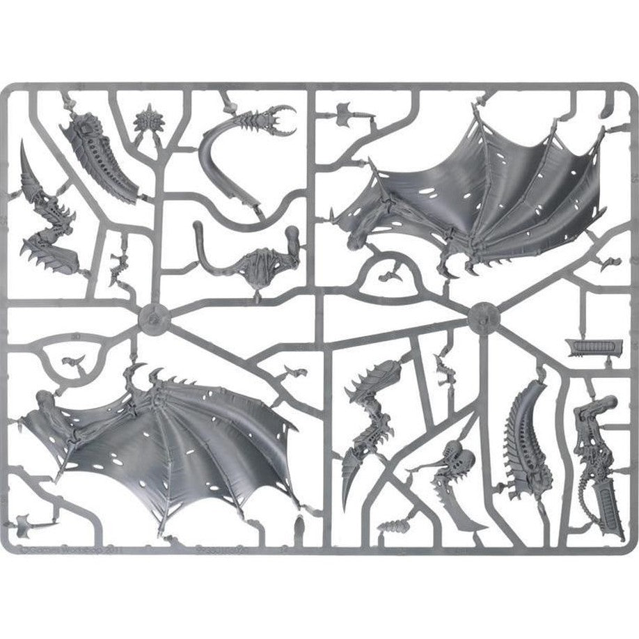 This multipart plastic kit builds one Hive Tyrant, an impressive and incredibly versatile leader-beast that can be built to take on a variety of battlefield roles. This looming creature is a fitting centrepiece for any Tyranid army – it boasts a distinctive chitinous shell studded with chimneys, a snarling head with a cruel horn, and a hideous skeletal underbody. The kit features a huge variety of weapons options, including two scything talons, a heavy venom cannon, a stranglethorn cannon, and a bonesword and a lash whip – as well as biomorphs like adrenal glands and toxin sacs, plus other components for customising your Hive Tyrant. You can also choose to build this kit as flying Winged Hive Tyrant, or the insidious Swarmlord.
