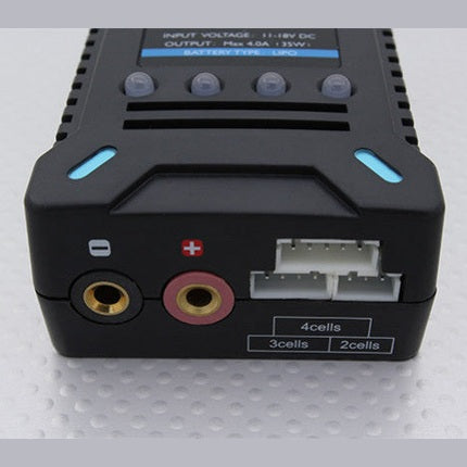 The iMAX B4 Compact Balance Charger makes charging of your Lipoly batteries easier than ever before. With no current limits or cell counts to set, you simply connect your battery to the B4 and it starts charging automatically. The charge current is variable, determined by the capacity and charge state of your battery. The max charging current is 4A (up to 35W).