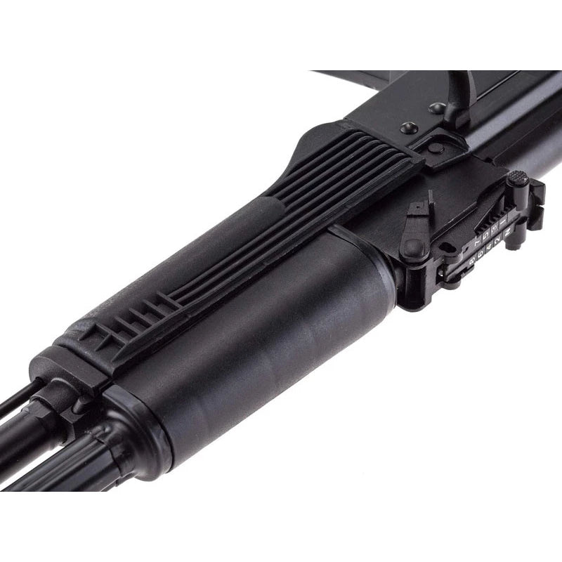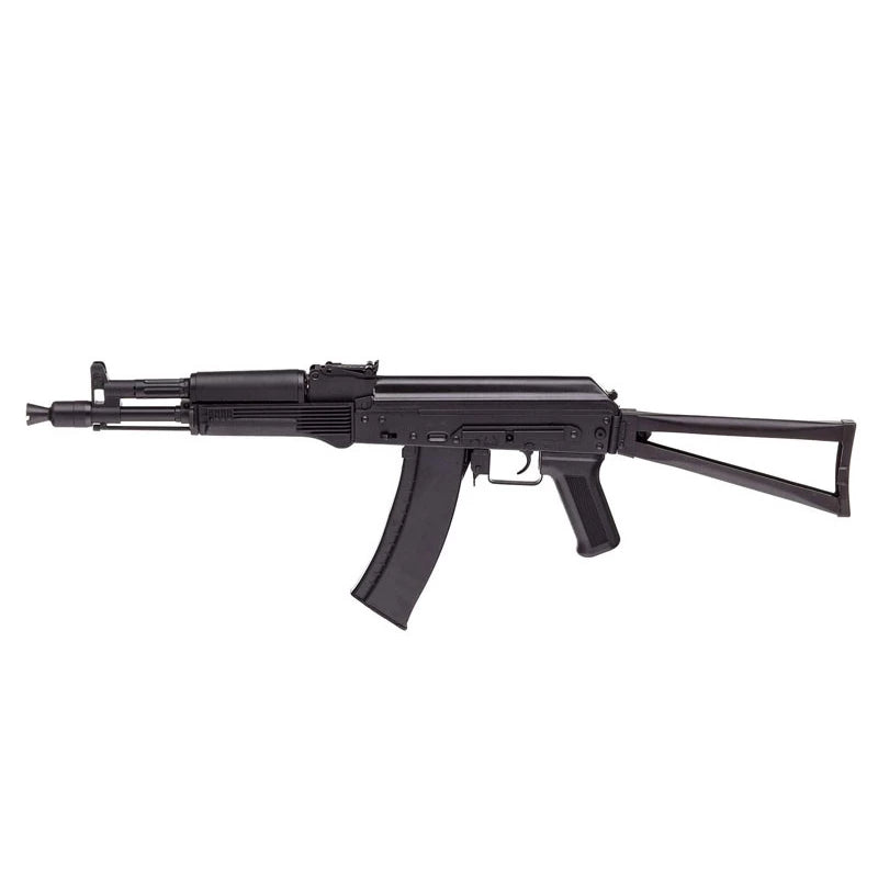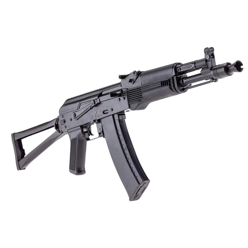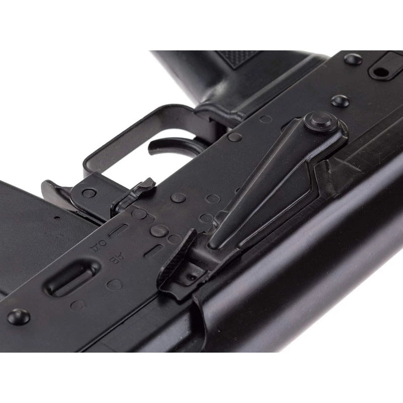 Made in Taiwan Specifications: Built Material: Steel / ABS Gear Box: Ver.3 Motor: AK Type Magazine Capacity: 450Rds Length: 586/823mm Barrel Length: 353mm Weight: 3235g Battery: AK Stick Type ( Not included ) Muzzle Velocity: 390 - 430 FPS with 0.2g BBs Package Includes: AEG, Magazine
