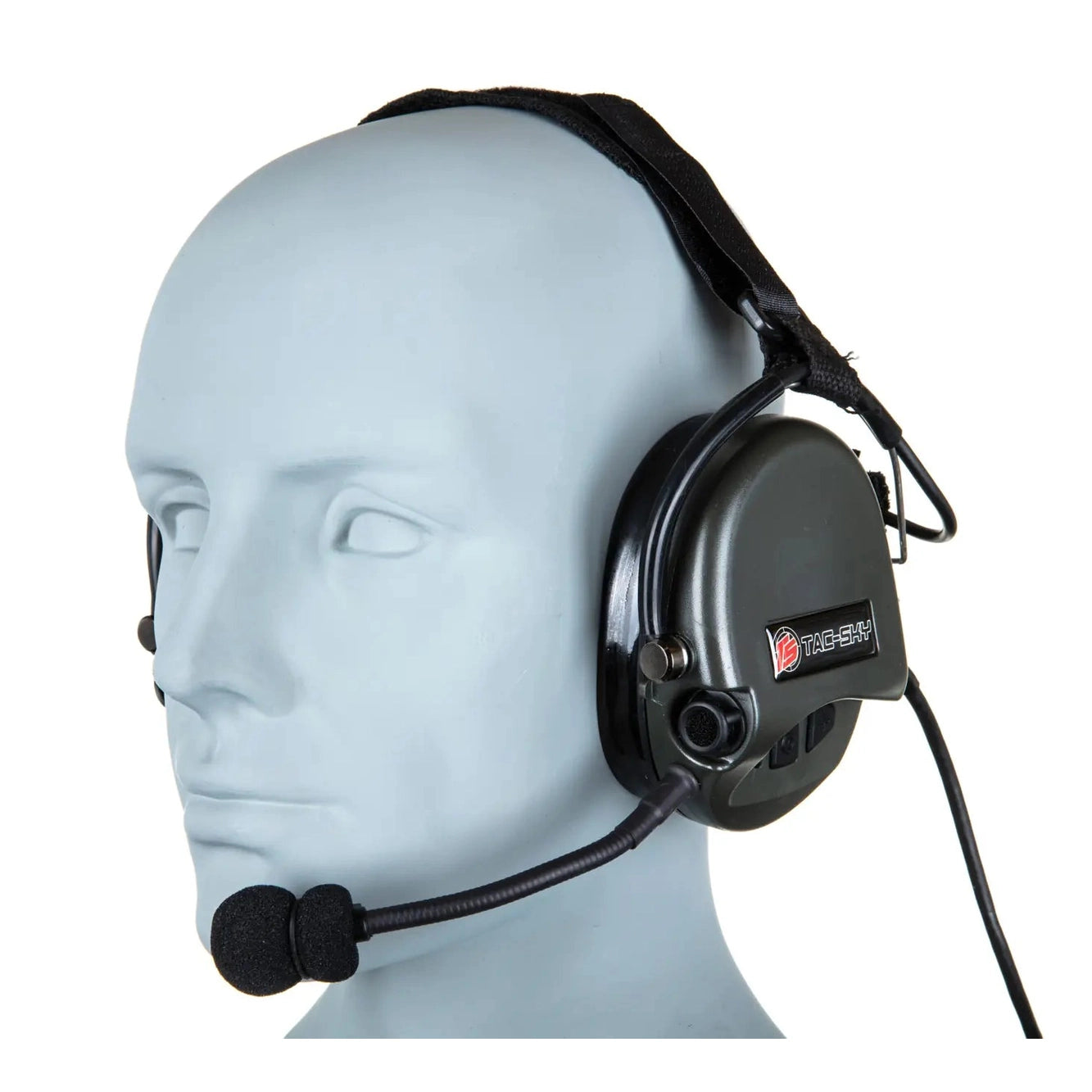 Model Tac-Sky WYS0042 Neckband Headset has an additional headband that will allow the headset to be worn under a helmet