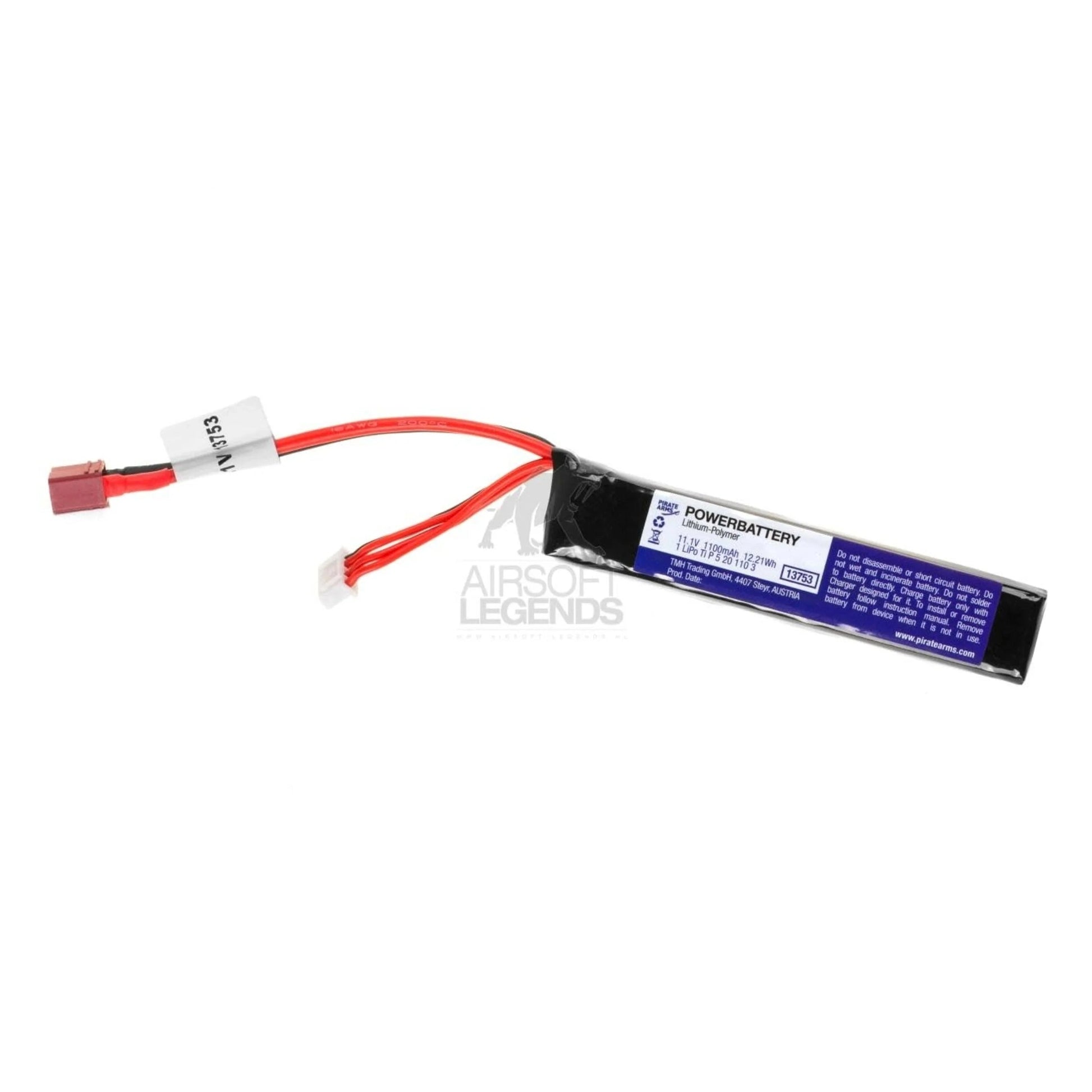 he Pirate Arms 11.1V LiPo Battery 1100mAh 20C Stock Tube Type Deans is suitable for various airsoft replicas provided they are 11.1v ready!