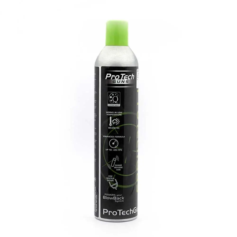 Pro Tech Green Gas can be used to power all Airsoft guns without the risk of damage, thanks to its optimally leveled pressure. It also contains silicone oil which protects and lubricates elements of your gun.