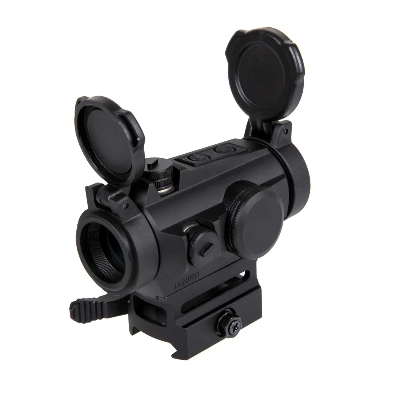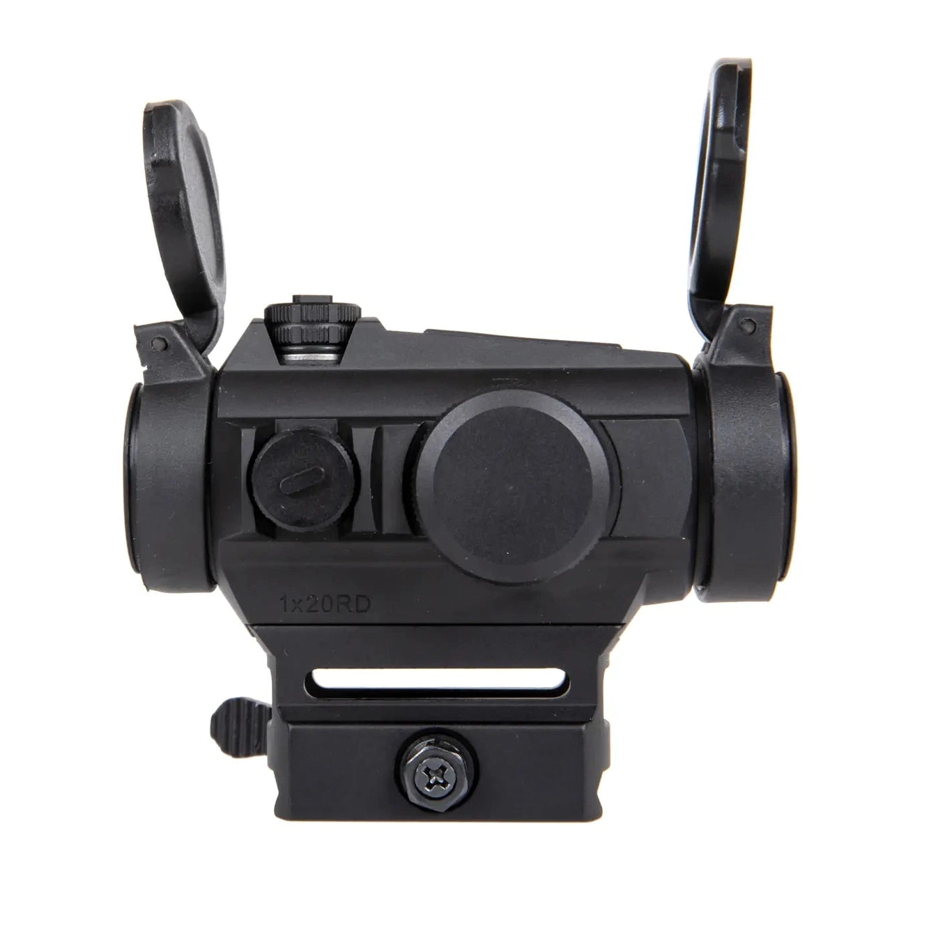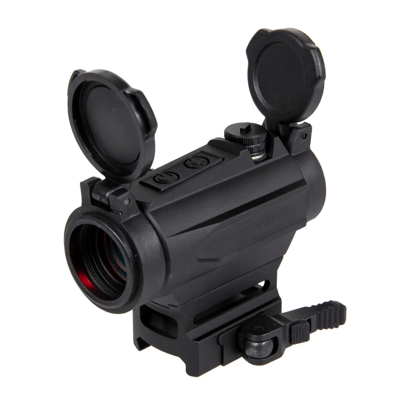 Made of durable aluminium, this collimator from Vector Optics. The sight is powered by a CR2032 battery and comes with 2 mounts: high and low. Mounted on a standard 22mm RIS rail. The model has a total of 8 brightness levels for the dot (7 daylight and 1 for night vision), 3 MOA dot sight.