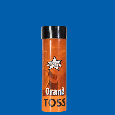 Orange smoke. Product duration 60-90 seconds. Only for outdoor use with winds below 5 m/s. The toss is activated by pulling the string.