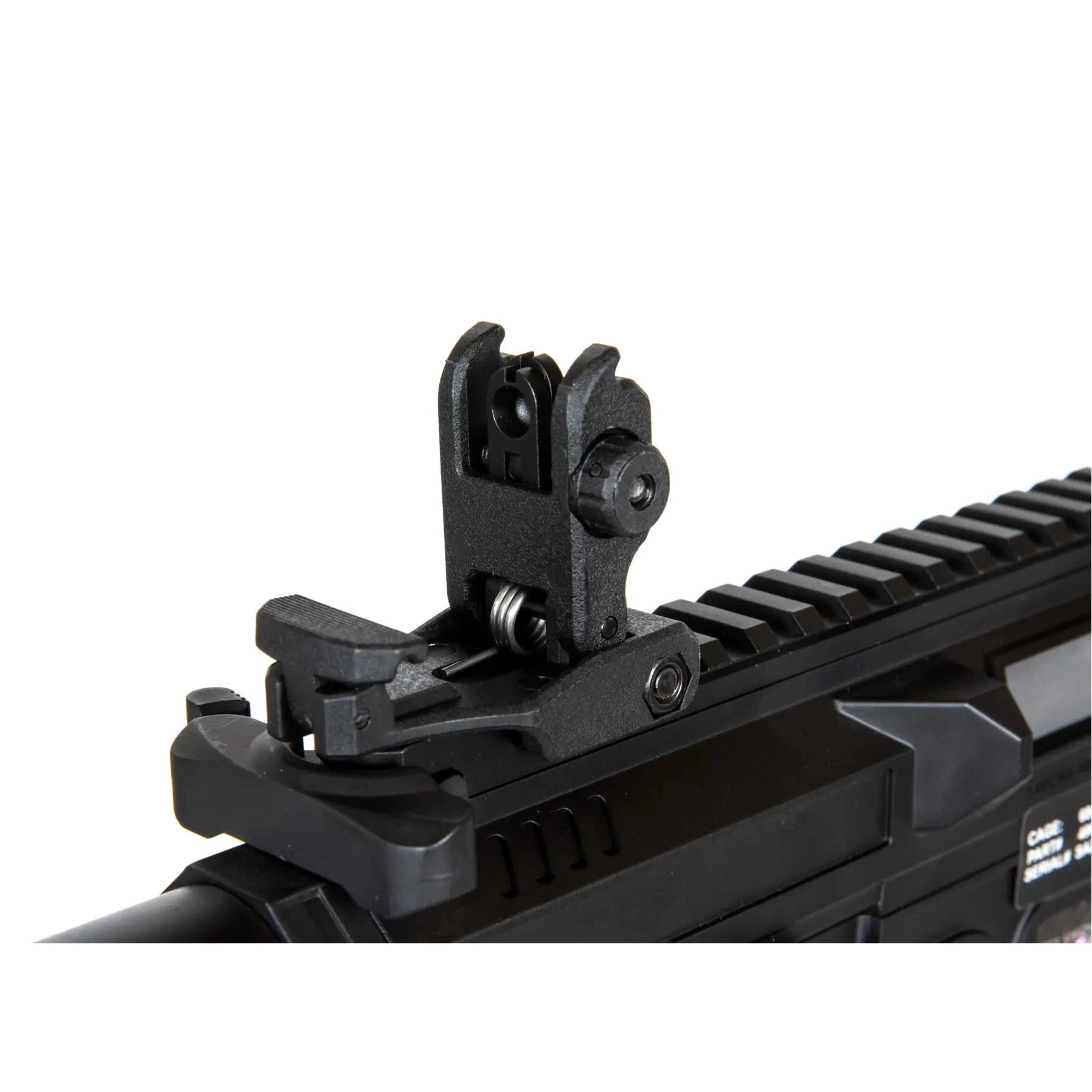 The SA-X02 also comes equipped with an M-LOK front licensed by Strike Industries. The barrel is finished with a standard muzzle device. Foldable iron sights were placed on the top RIS rail.
