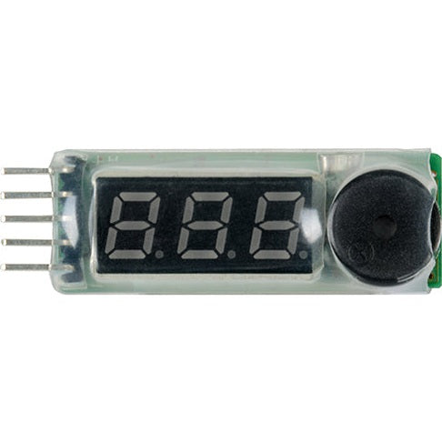 To avoid an excessive cells discharging is advisable to use LiPo alarm. When dangerous limit voltage level per cell will be reached LiPo alarm gives sound. Alarm with digital display.