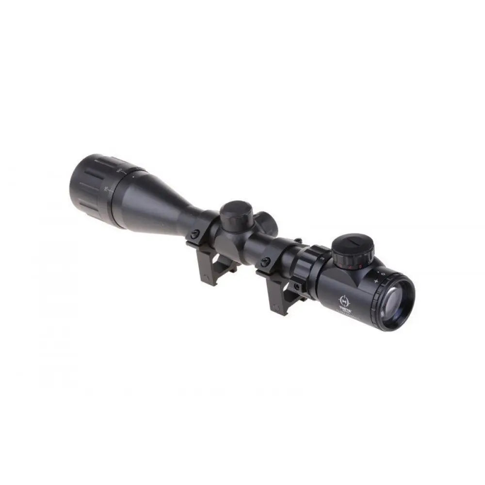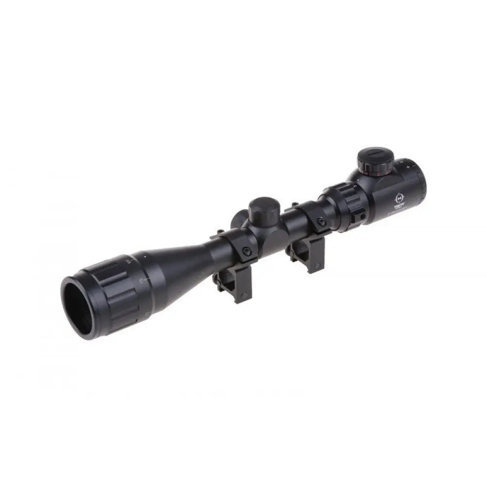 This magnified sniper scope is manufactured by Theta Optics, providing superb quality at a fraction of the price of its competitors. You get a metal exterior, and excellent quality glass, combined with an illuminated reticule with Red or Green options. The illumination allows you to see the cross hairs, even in the pitch black.