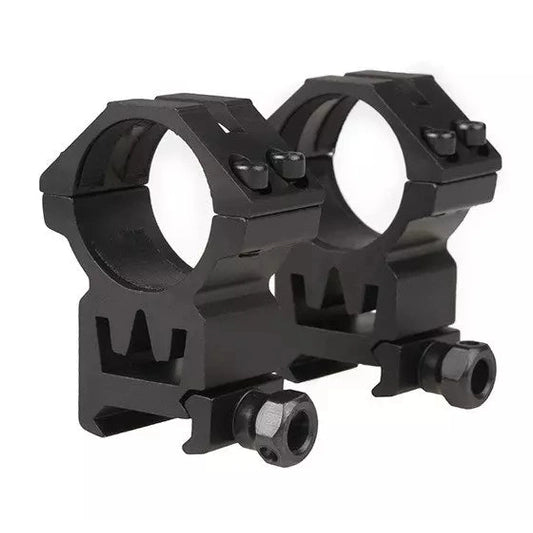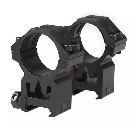 Made entirely of metal. It consists of two rings of a diameter of 30mm, screwing in with the Allen screws. Universal mounting allows for easy attachment to each replica equipped with a standard 22mm RIS rail.