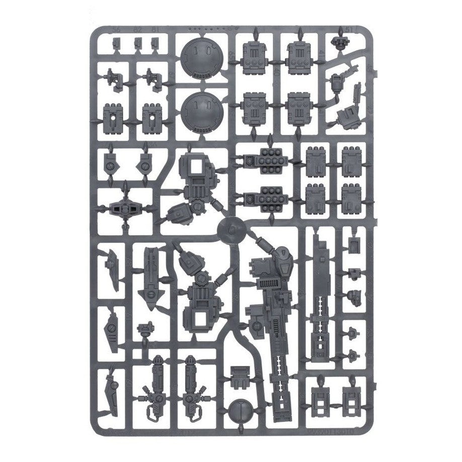 This multi-part plastic kit contains 91 components and a T'au transfer sheet with which to make a Broadside Battlesuit and two Drones.